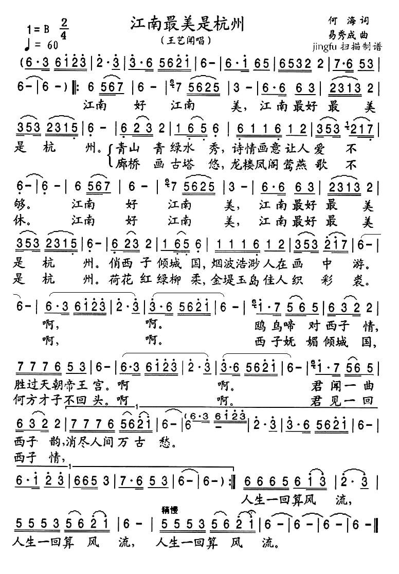 《江南最美是杭州》简谱 王艺闻