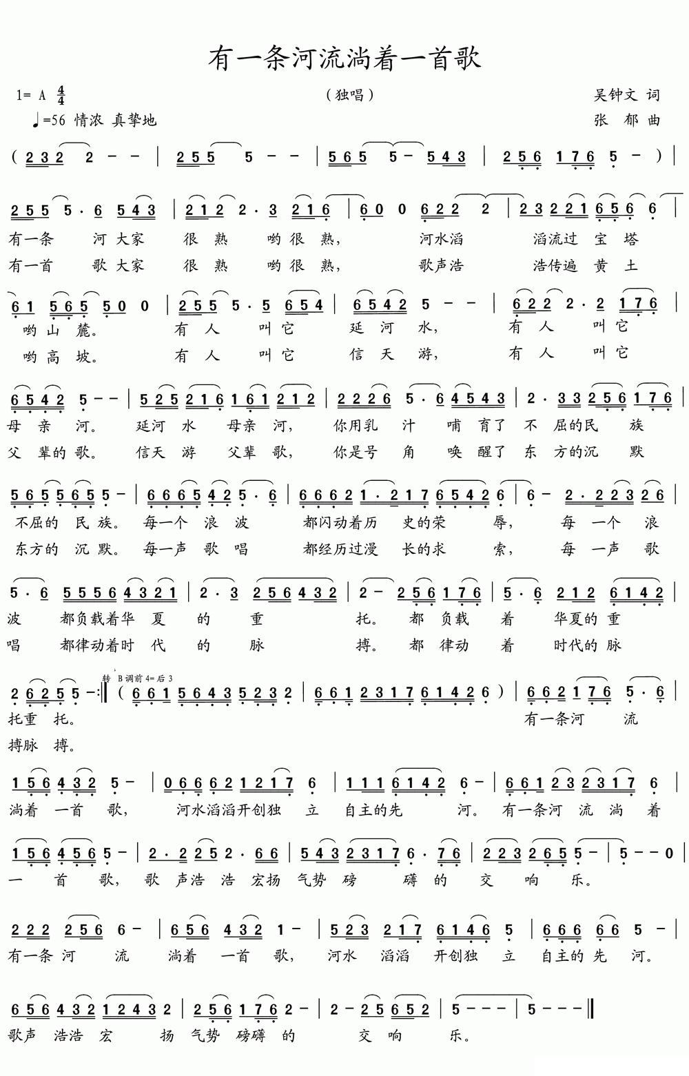 《有一条河流淌着一首歌(吴钟文词 张郁曲)》简谱