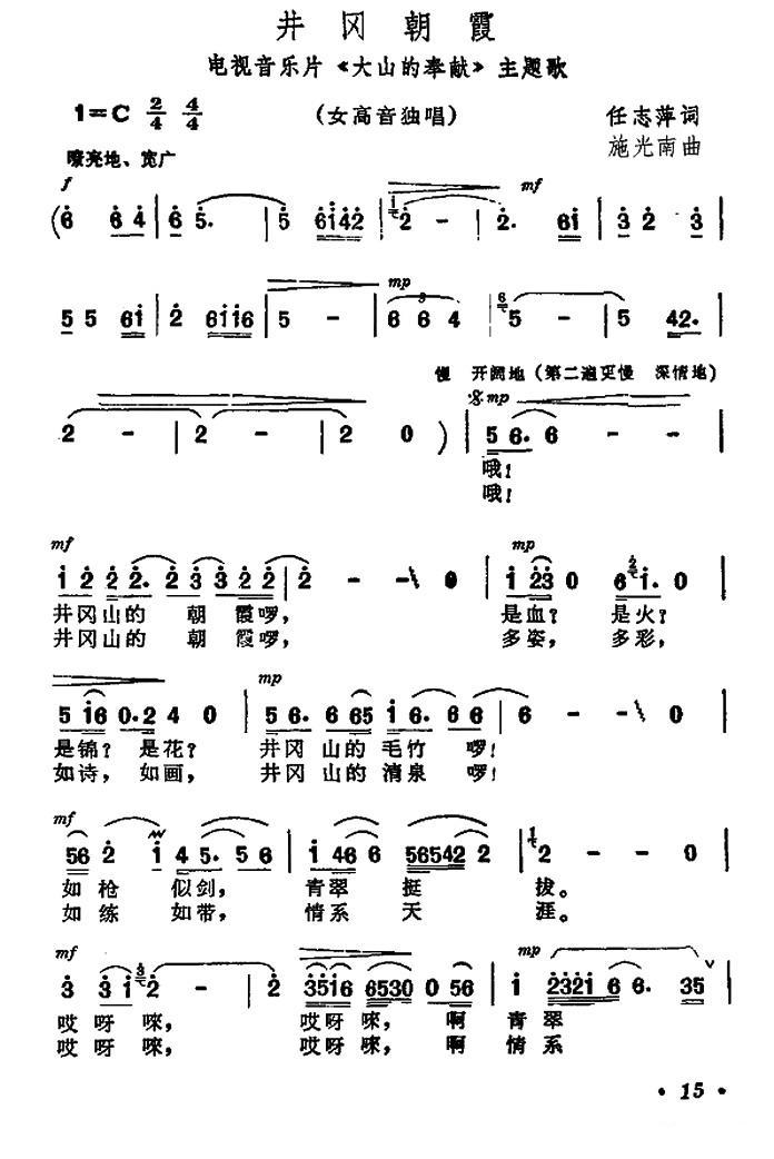 《井冈朝霞(电视音乐片《大山的奉献》主题歌)》简谱