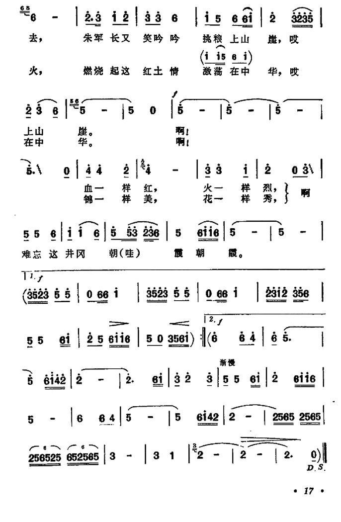 井冈朝霞(《大山的奉献》主题歌)简谱