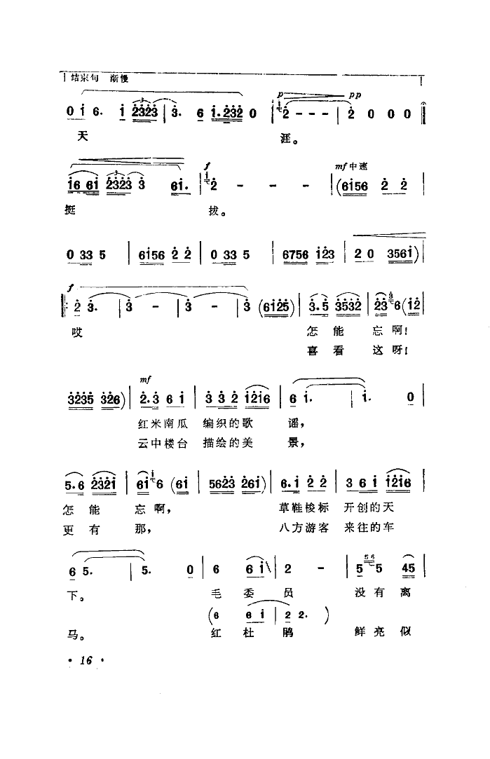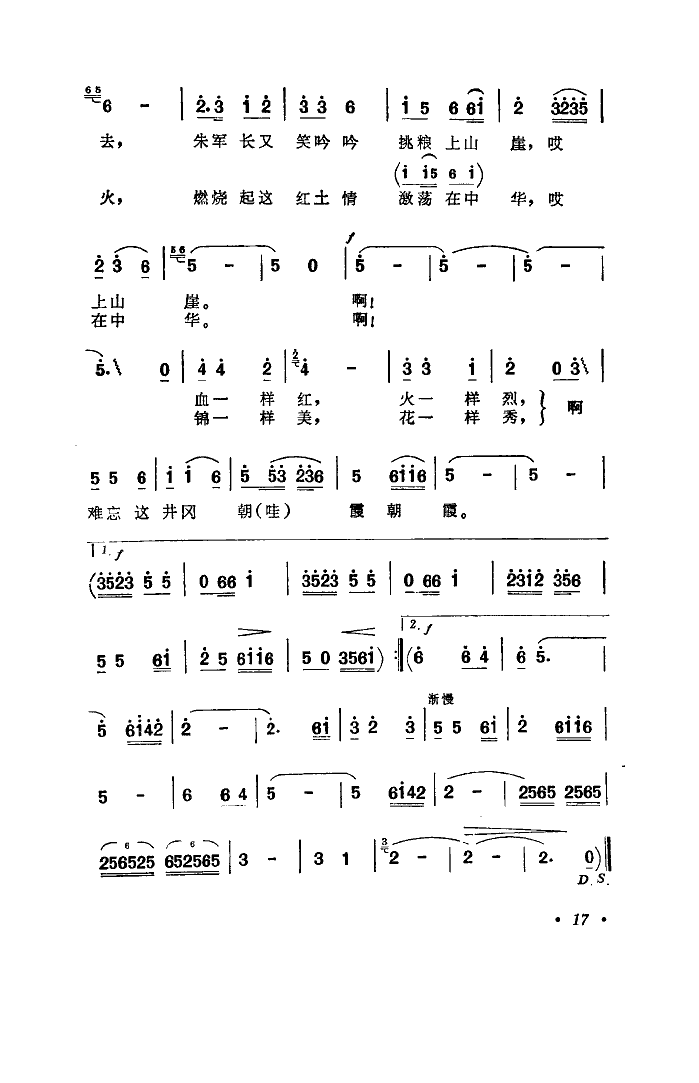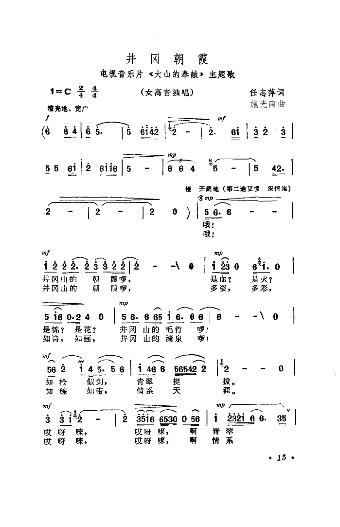 《井冈朝霞(《大山的奉献》主题歌)》简谱 佚名