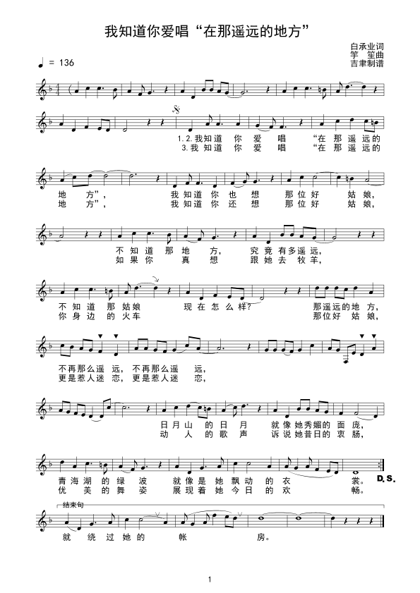 《我知道你爱唱“在那遥远的地方”线谱》简谱
