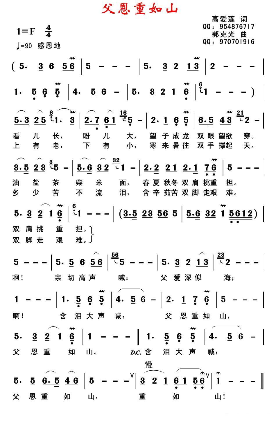 《父恩重如山(高爱莲词 郭克光曲)》简谱