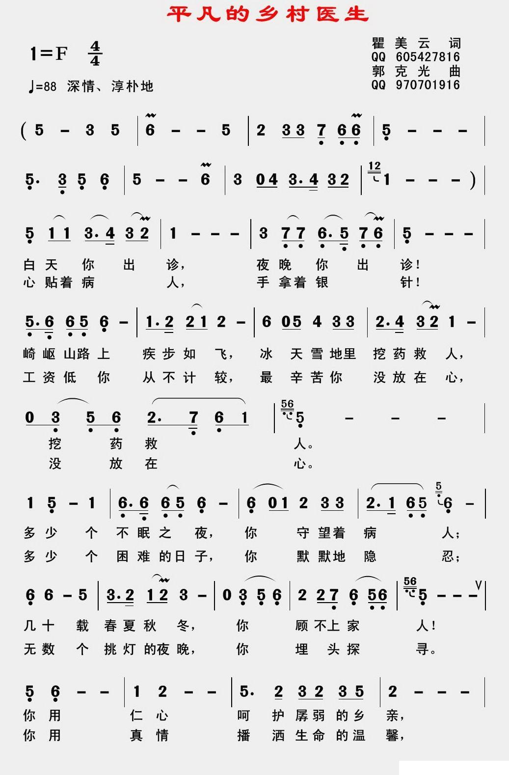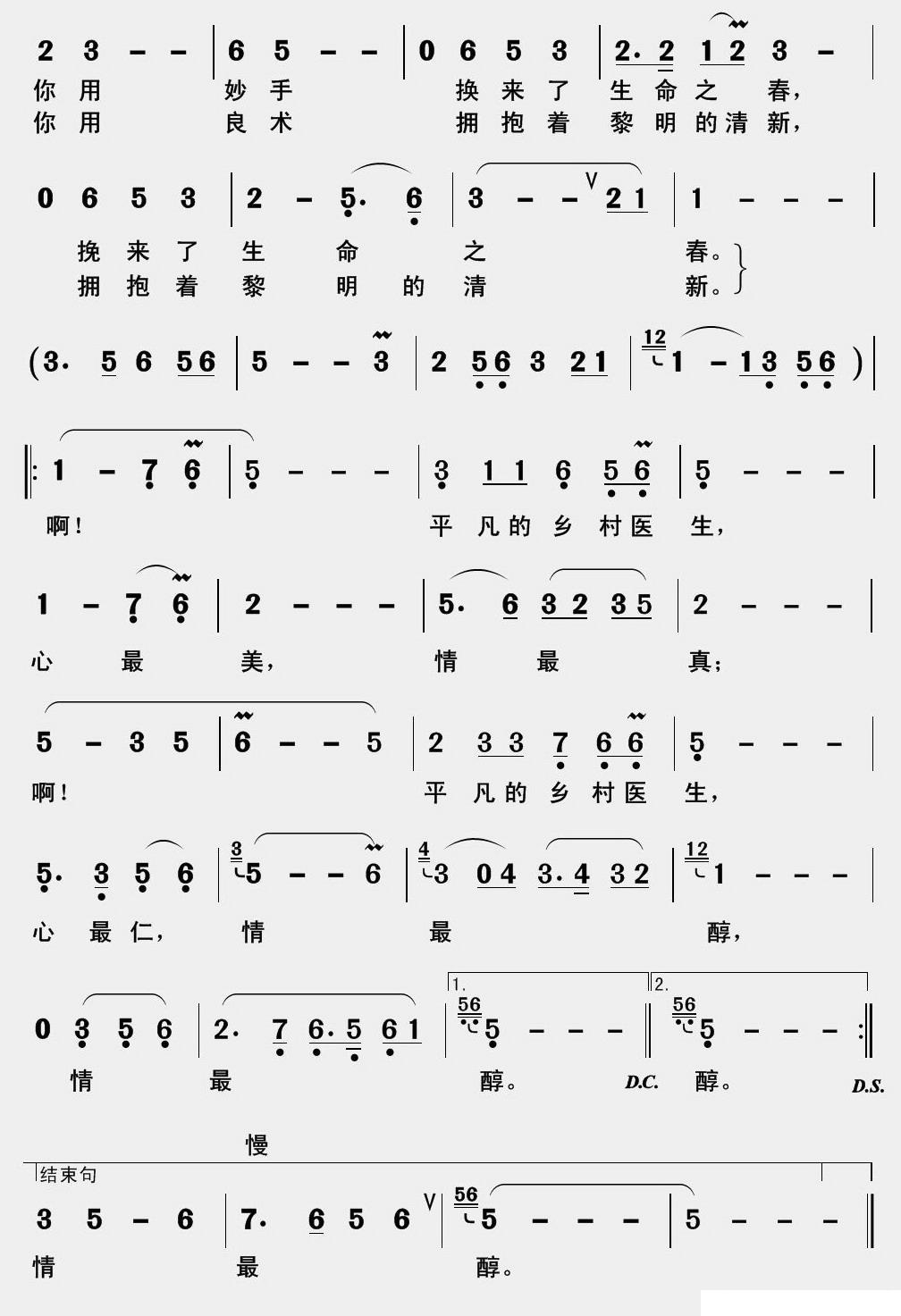《平凡的乡村医生》简谱