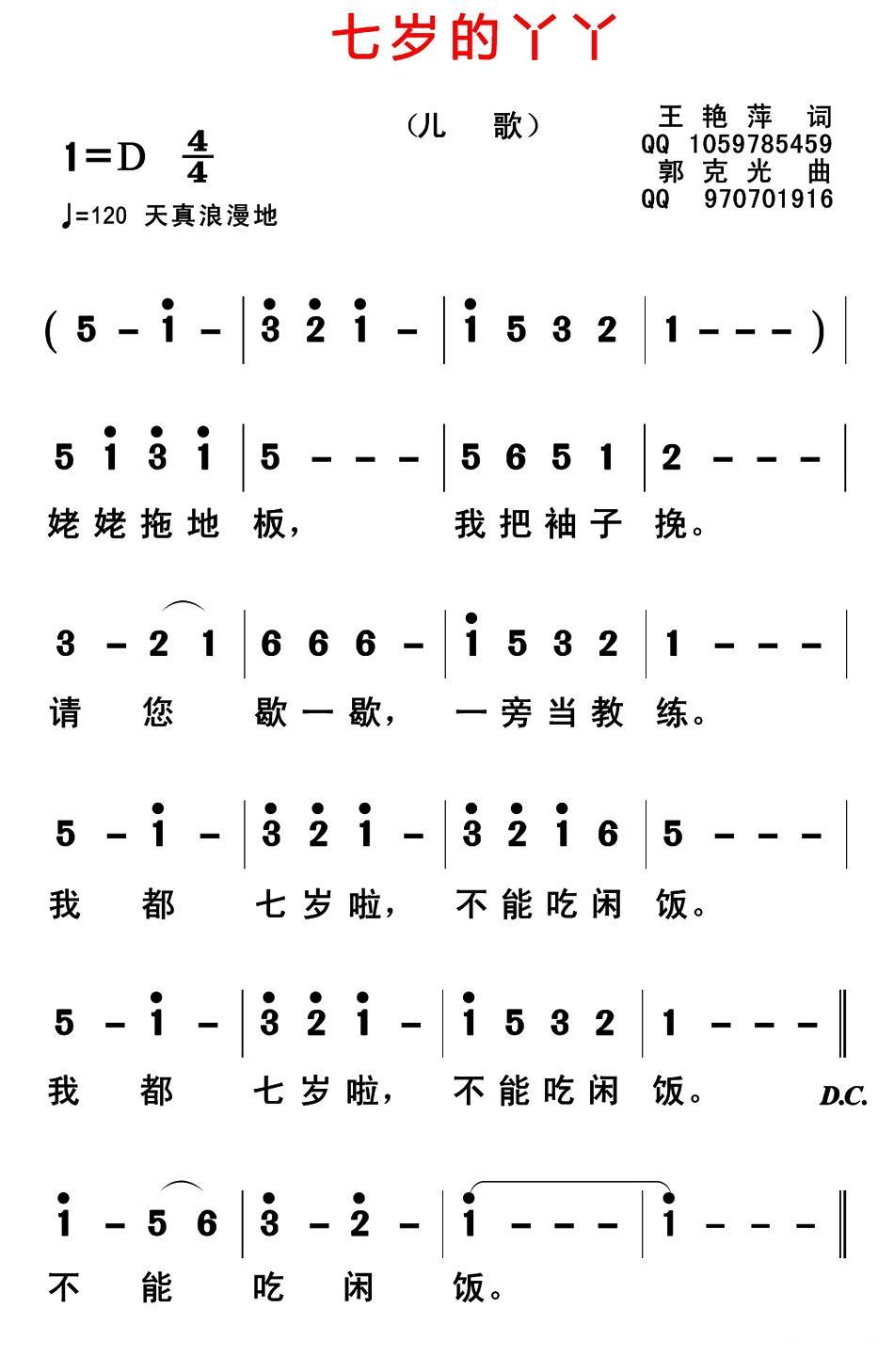 《七岁的丫丫》简谱