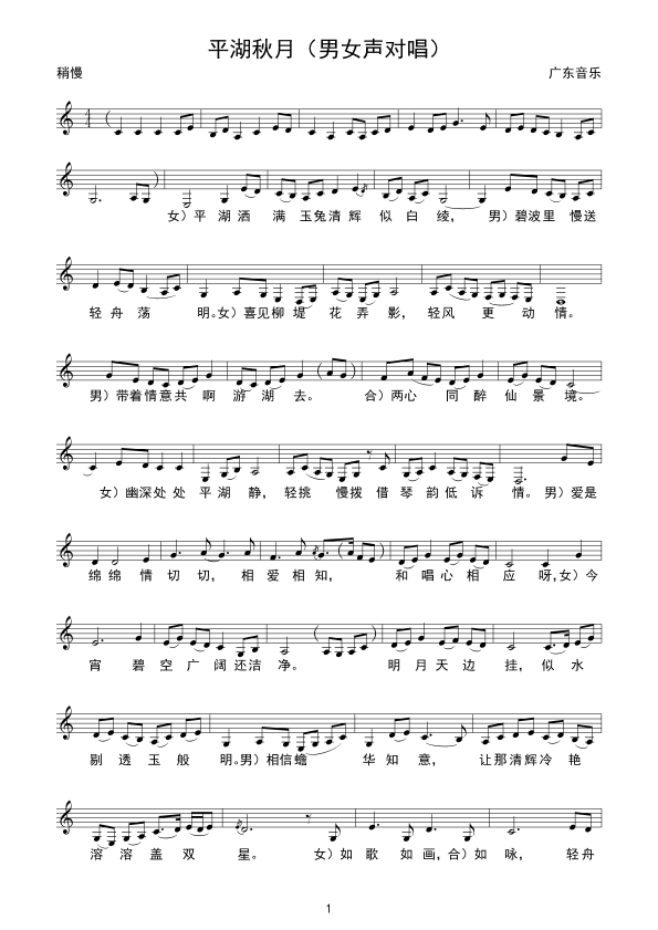 《平湖秋月(男女声对唱)线谱》简谱