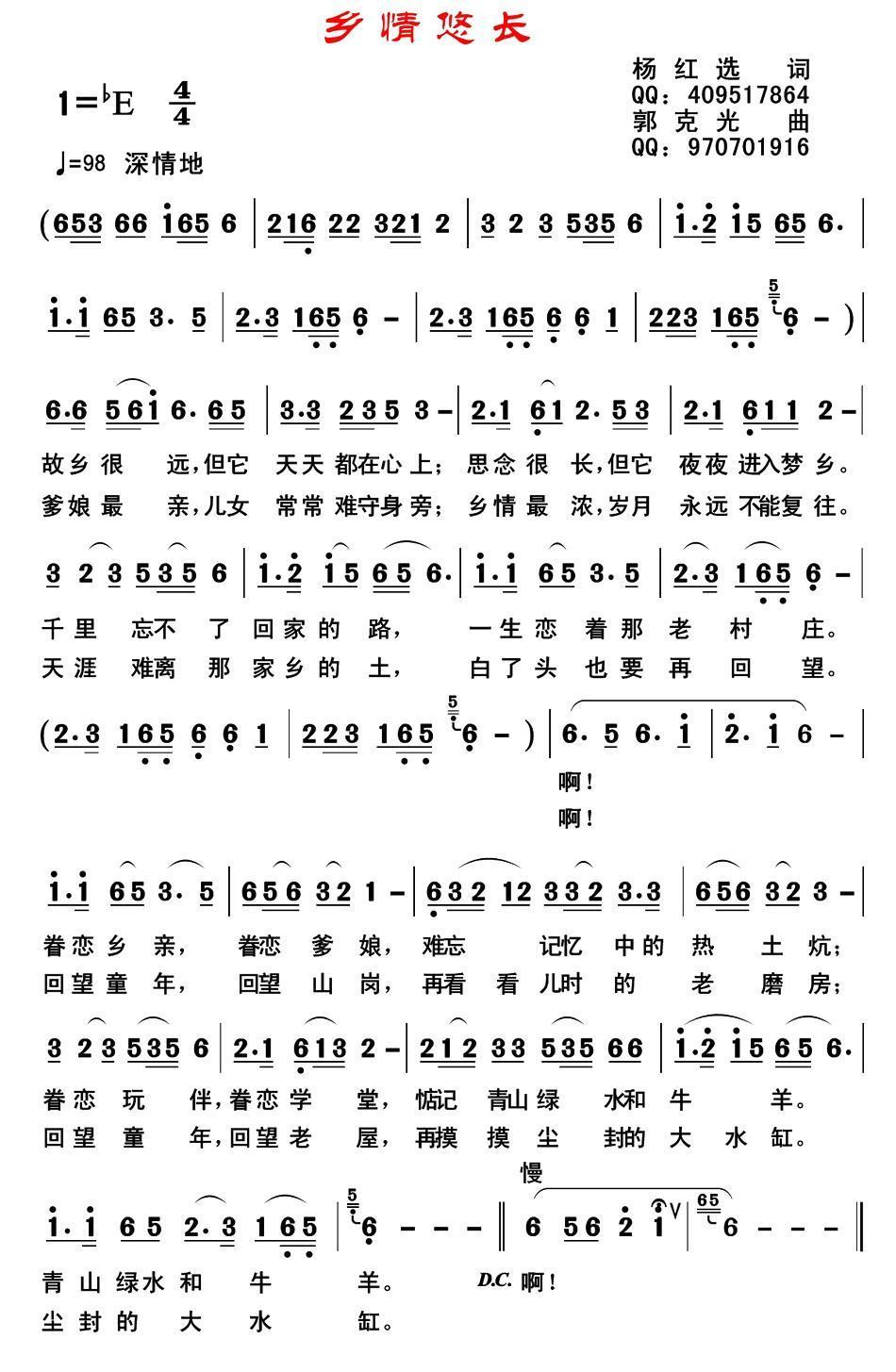 《乡情悠长》简谱