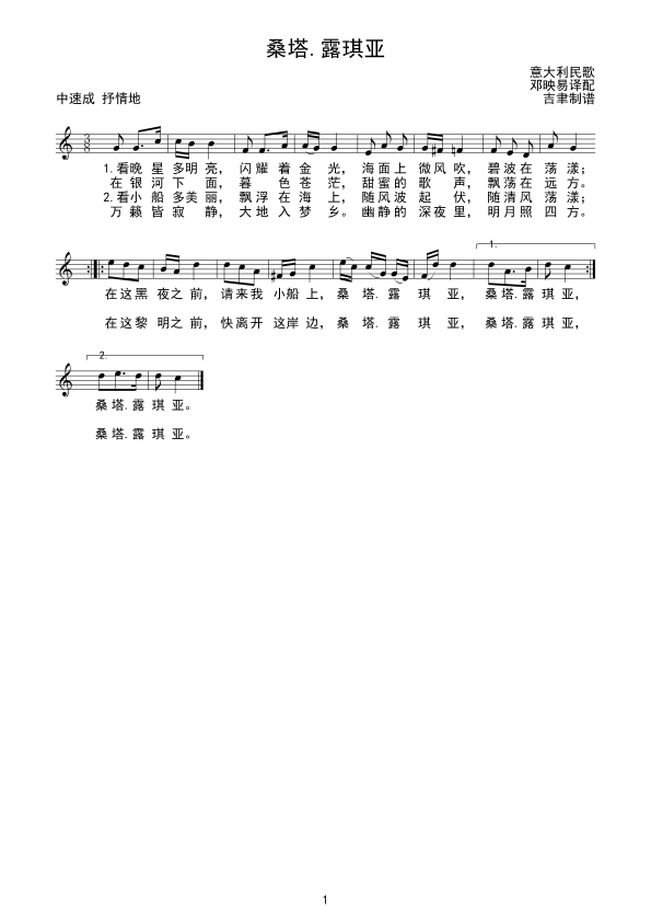 《桑塔.露琪亚(线谱)》简谱