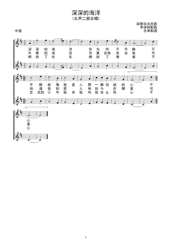 《深深的海洋(线谱)》简谱
