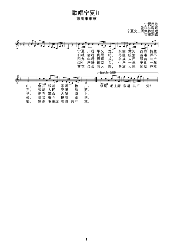 谁不爱咱宁夏川(线谱)