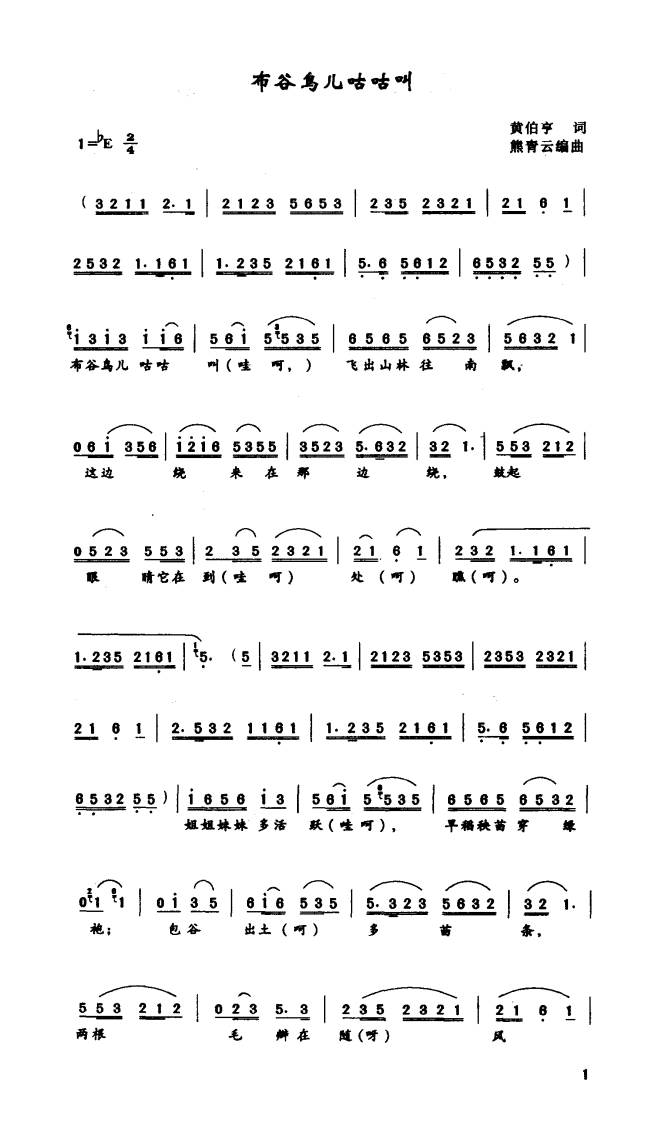 《布谷鸟儿咕咕叫(四川清音)》简谱 任萍
