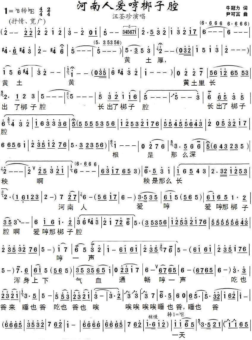 《河南人爱哼梆子腔(戏歌)》简谱 汪荃珍