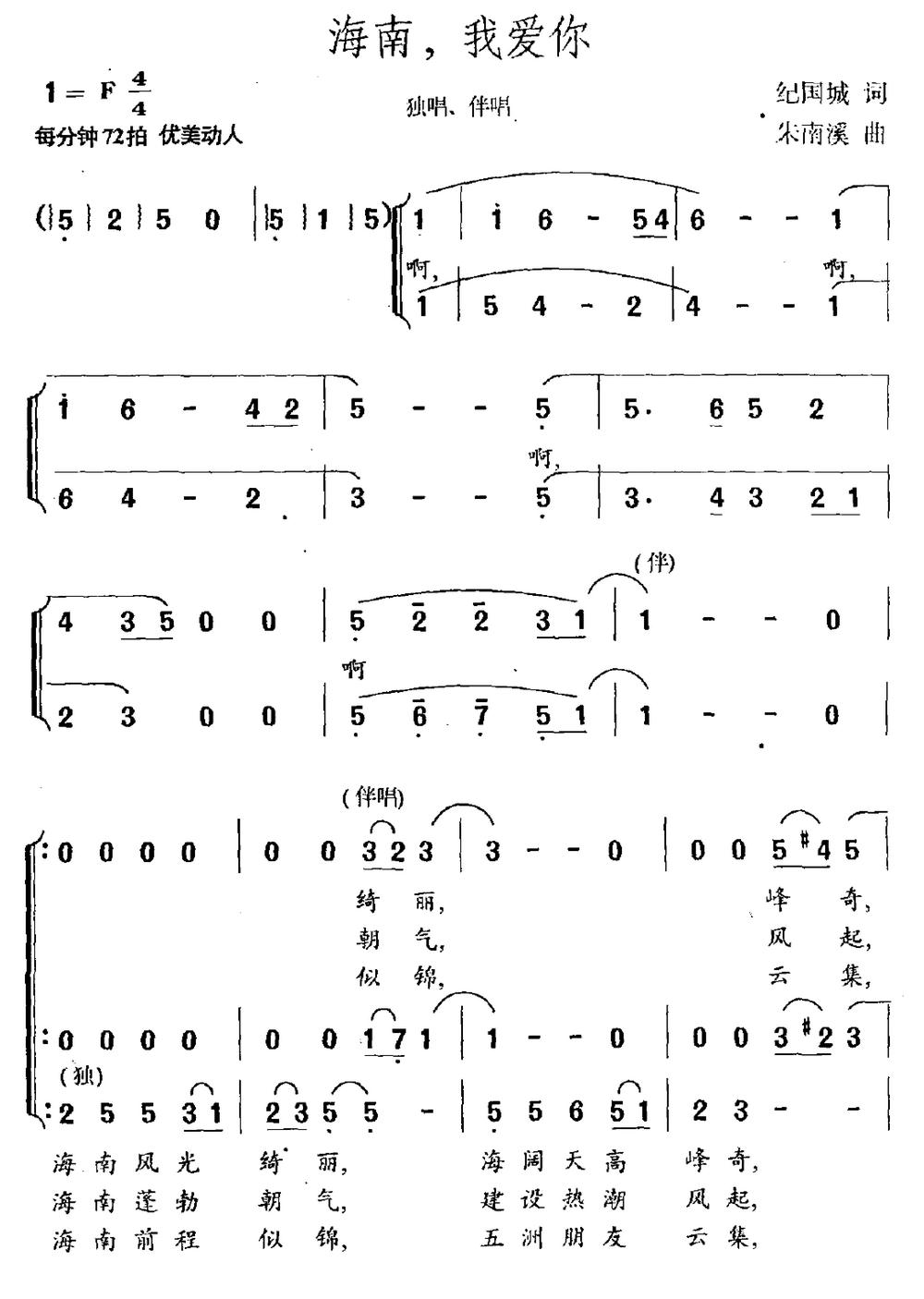 《海南,我爱你》简谱