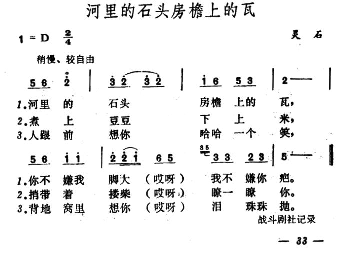 《河里的石头房檐上的瓦》简谱 山西灵石民歌