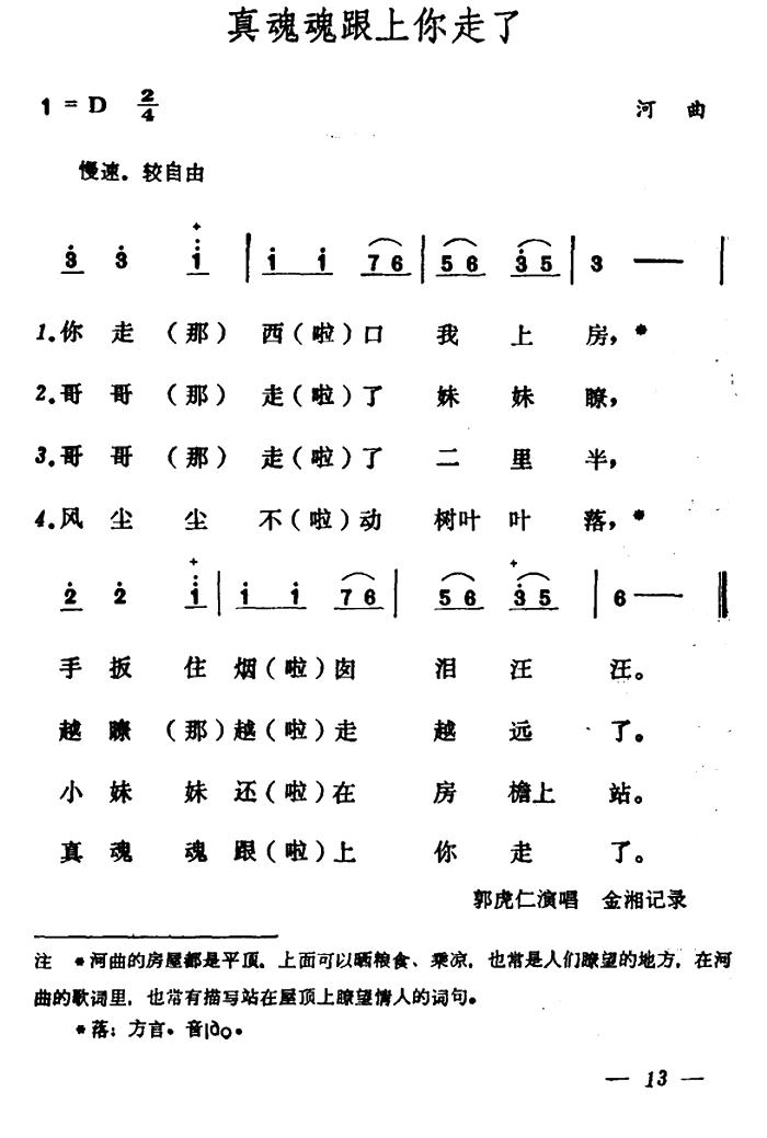 《真魂魂跟上你走了》简谱 山西河曲民歌