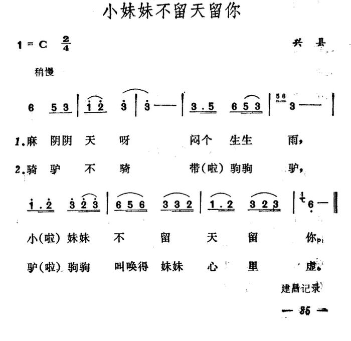 《小妹妹不留天留你》简谱 山西兴县民歌