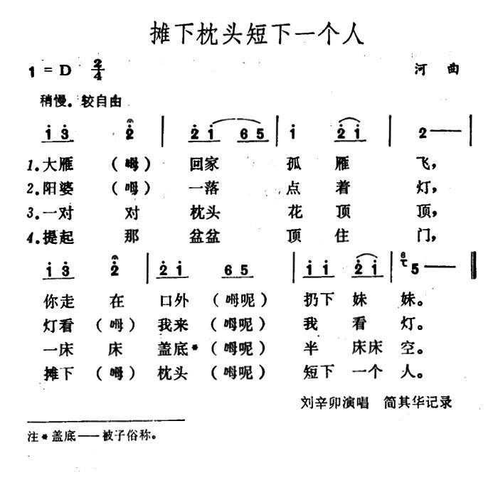 《摊下枕头短下一个人》简谱 山西河曲民歌
