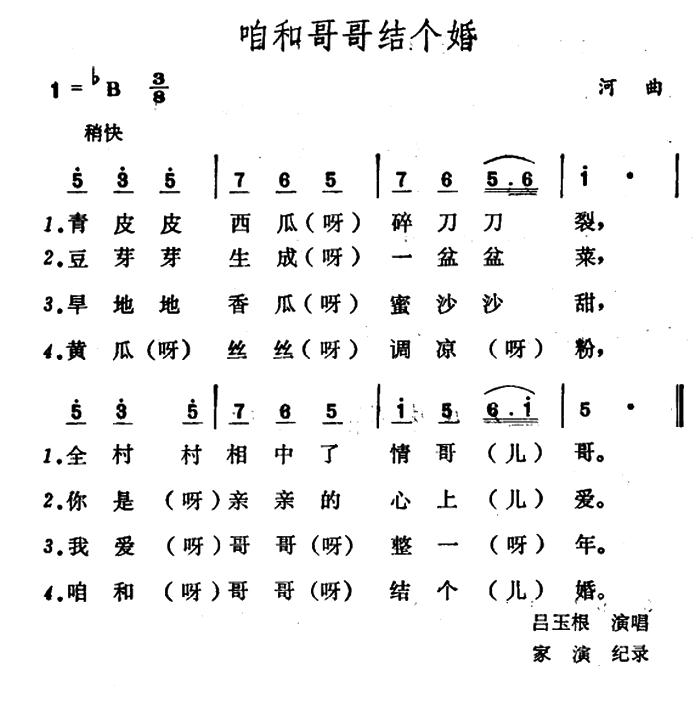 《咱和哥哥结个婚》简谱 山西河曲民歌