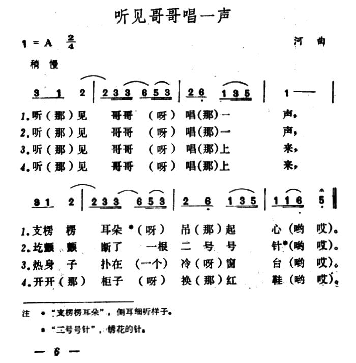 《听见哥哥唱一声》简谱 山西河曲民歌