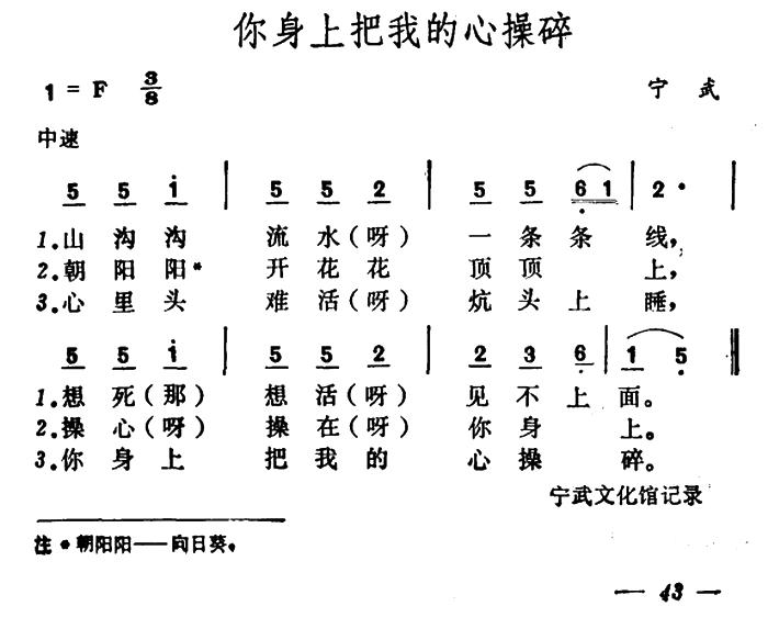 《你身上把我的心操碎》简谱 山西宁武民歌