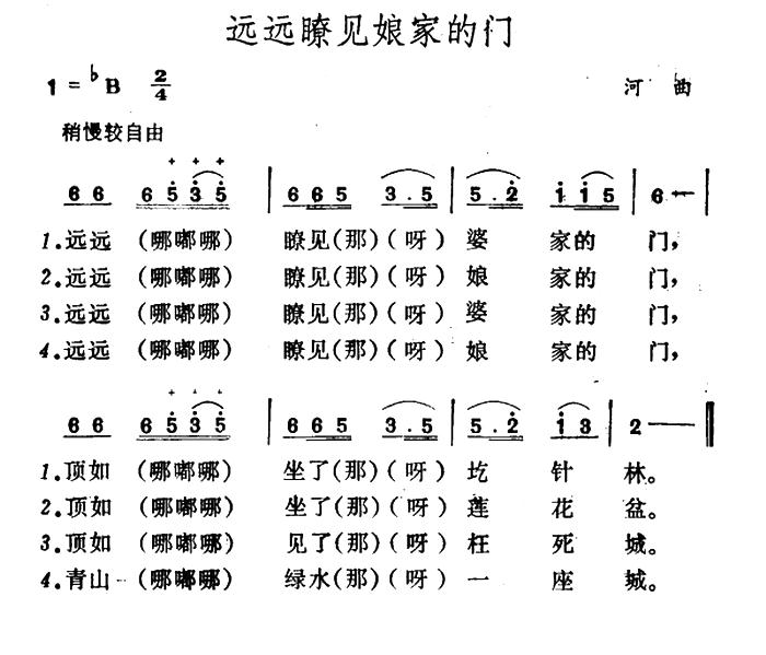 《远远瞭见娘家的门》简谱 山西河曲民歌