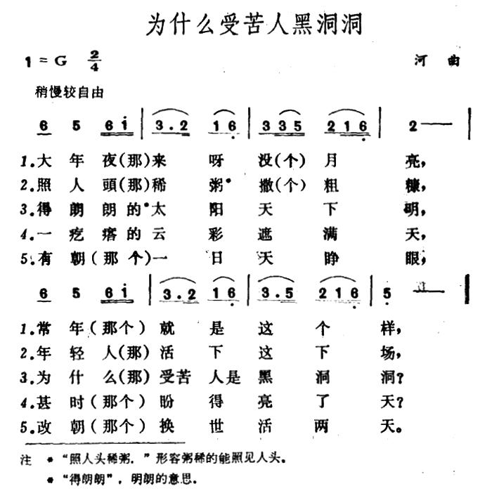 《为什么受苦人黑洞洞》简谱 山西河曲民歌