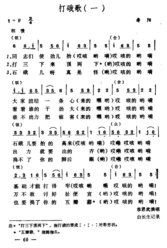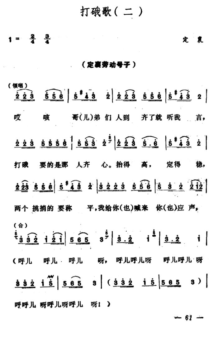《打硪歌(2首)(山西民歌)》简谱 山西寿阳、定襄号子
