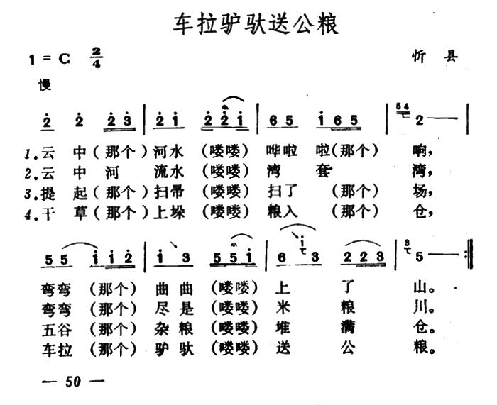 《车拉驴驮送公粮》简谱 山西忻县民歌