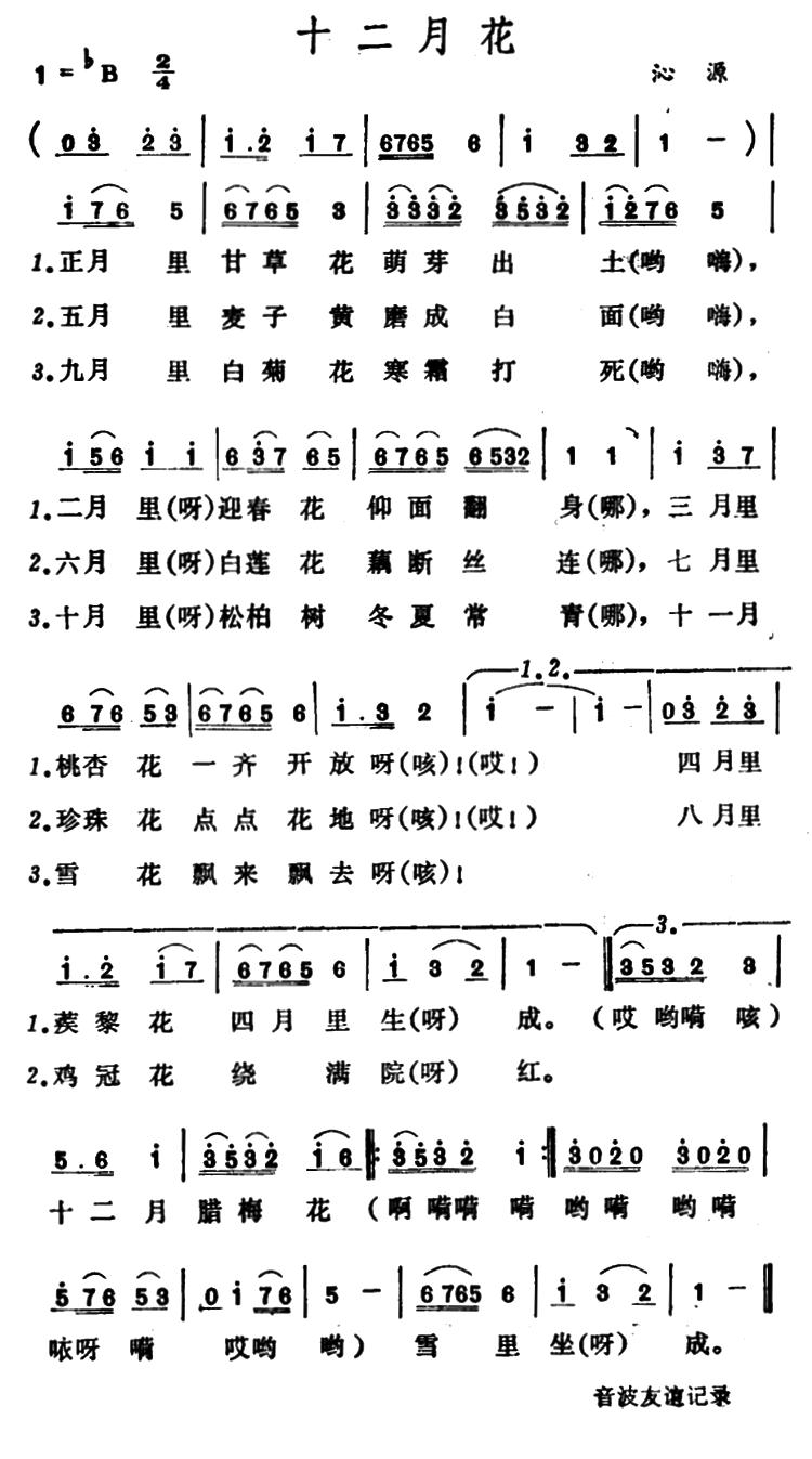 《十二月花 (山西沁源小调)》简谱