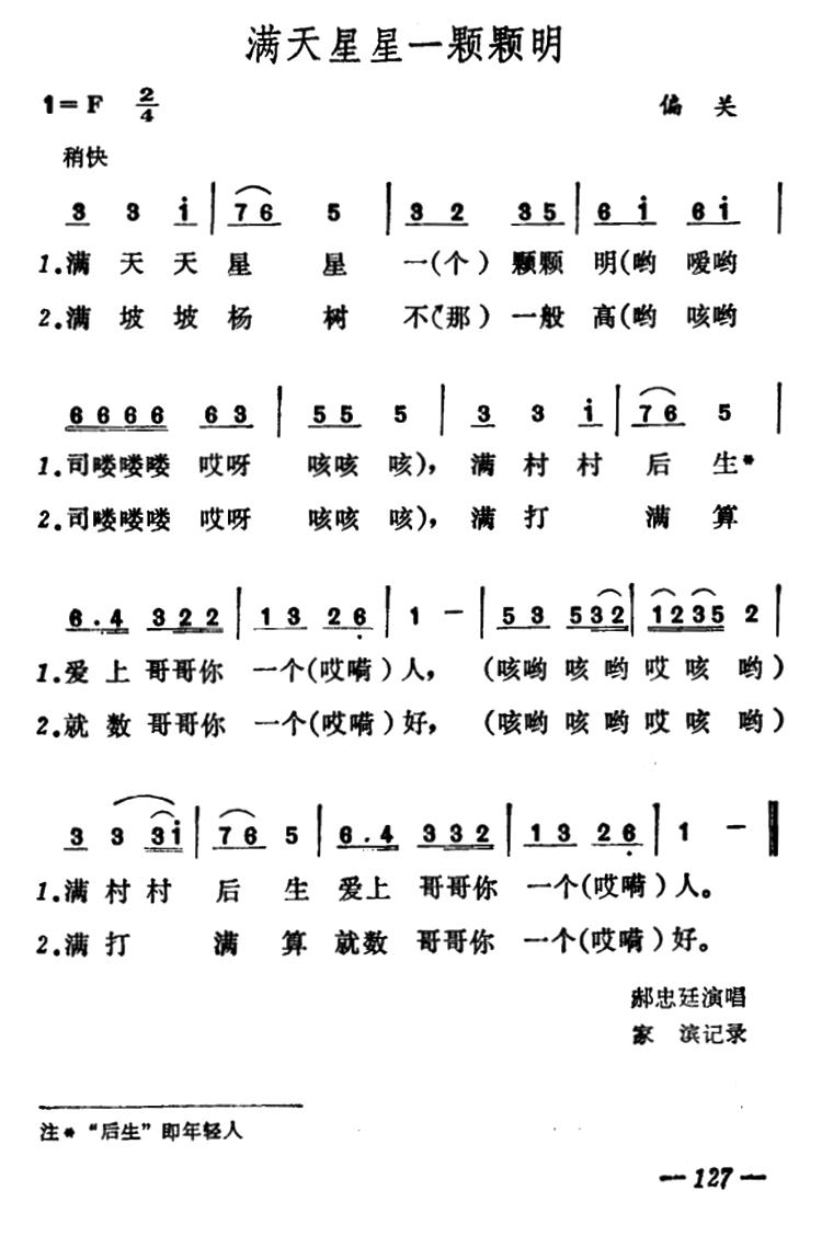 《满天星星一颗颗明》简谱 山西 偏关小调