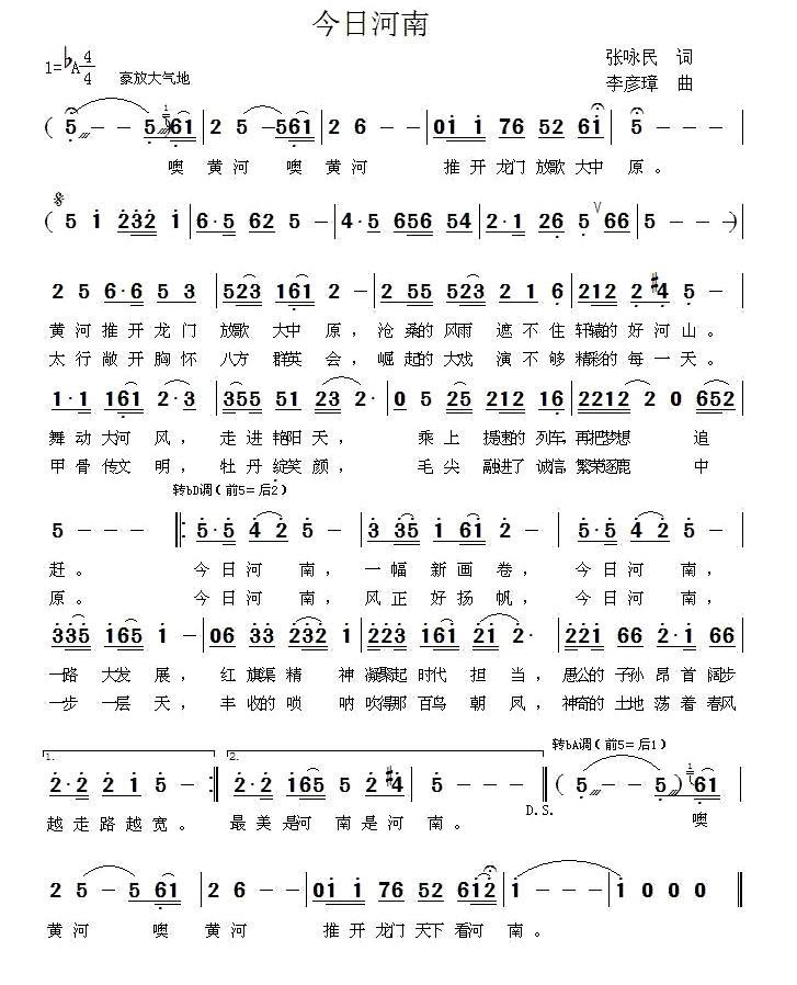 《今日河南》简谱 鲁勇