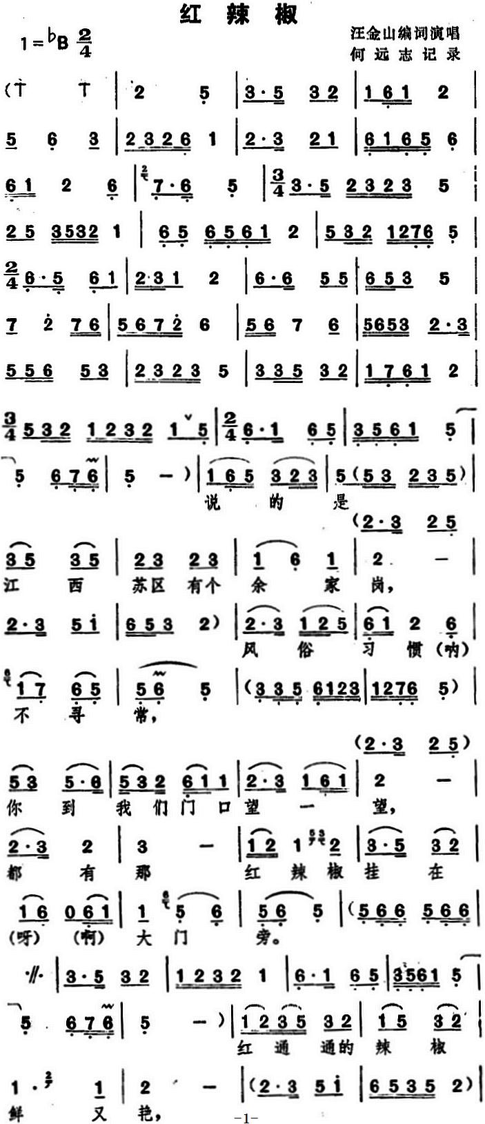 《[湖北大鼓]红辣椒》简谱 江金山