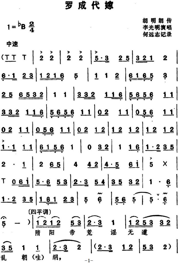 《[湖北大鼓]罗成代嫁》简谱 李光明
