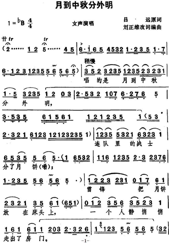 《[湖北大鼓]月到中秋分外明》简谱 刘正维编曲