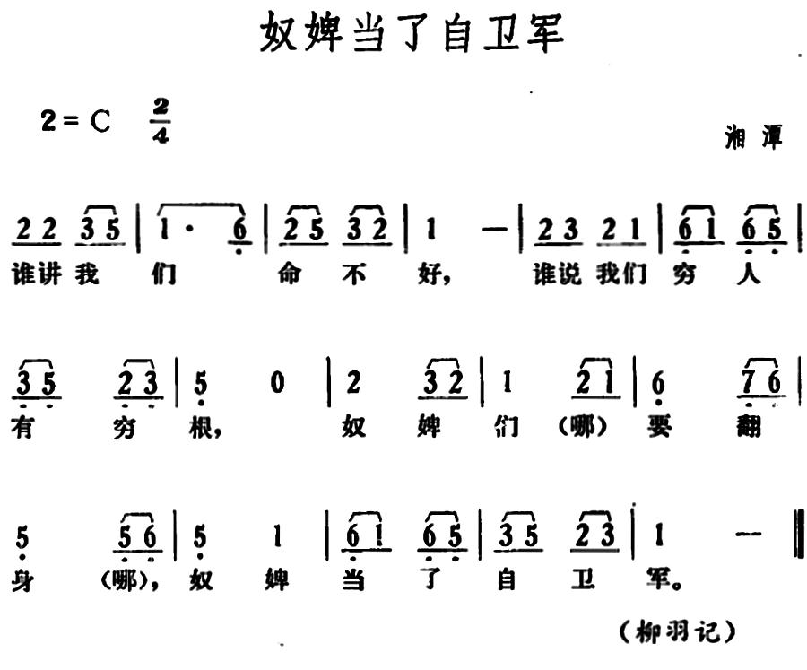 《奴婢当了自卫军》简谱 湖南湘潭革命民歌
