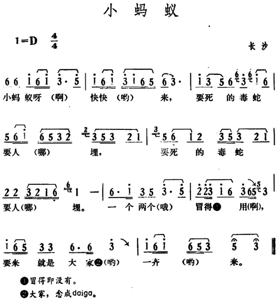 《小蚂蚁(湖南长沙革命民歌)》简谱