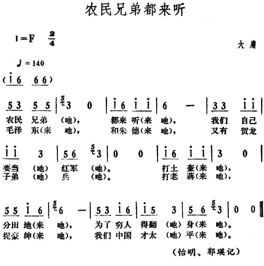 《农民兄弟都来听》简谱 湖南大庸革命民歌
