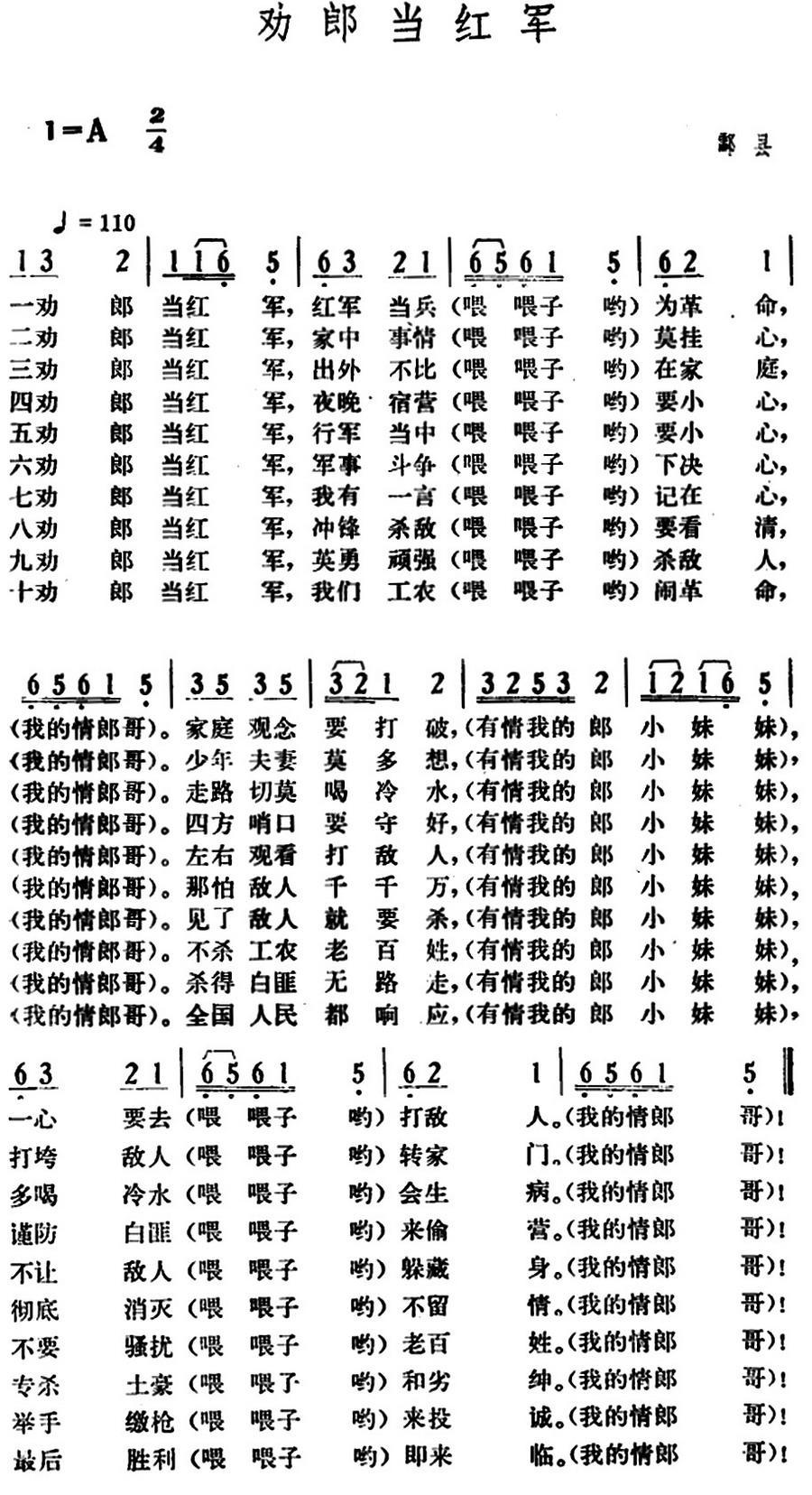 《劝郎当红军》简谱 湖南酃县革命民歌