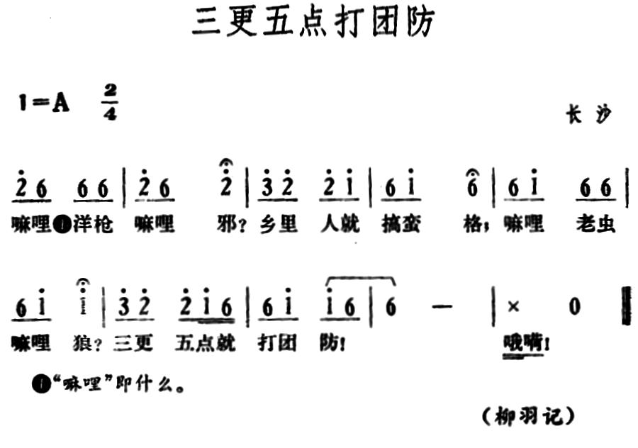 《三更五点打团防》简谱 湖南长沙革命民歌