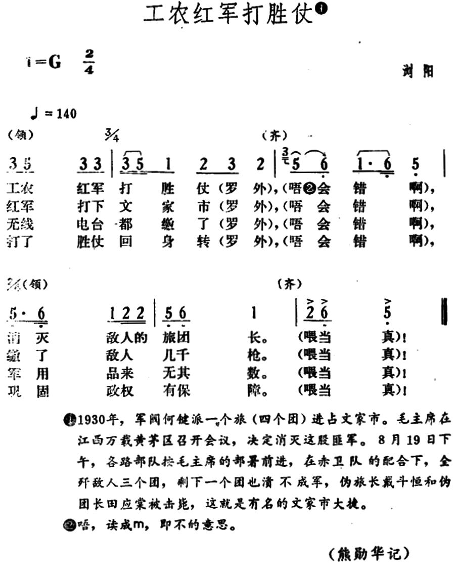 《工农红军打胜仗》简谱 湖南浏阳革命民歌