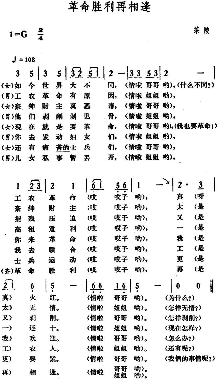 《革命胜利再相逢》简谱 湖南茶陵革命民歌