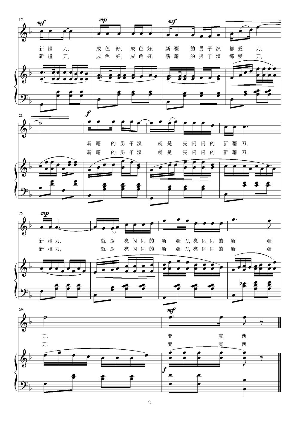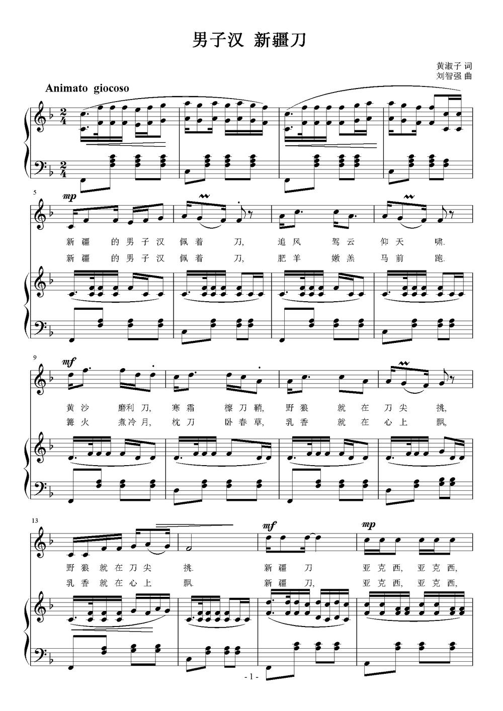 《男子汉 新疆刀(正谱)》简谱 刘智强