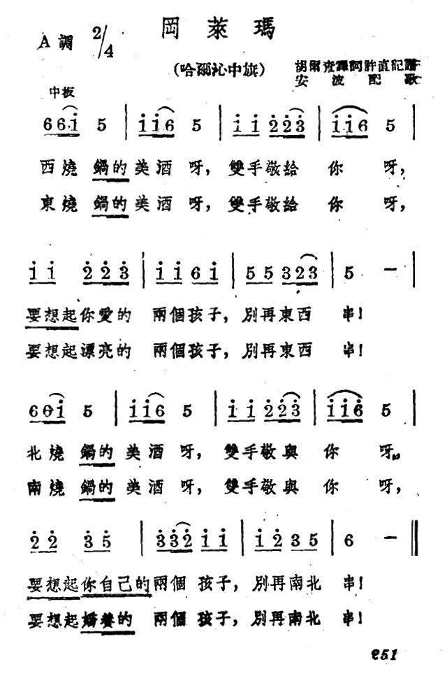 - 蒙古族民歌/安波记谱译词 | 田和简谱
