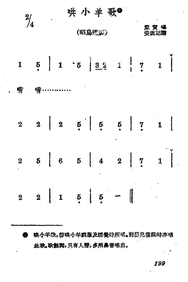 《哄小羊歌》简谱 蒙古族民歌、安波记谱