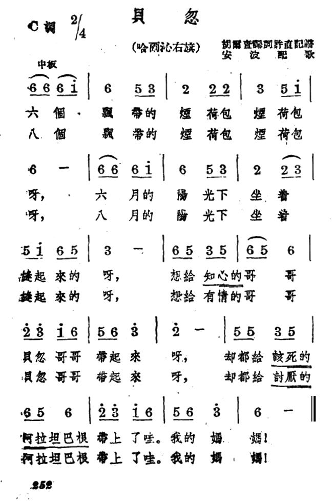 《贝忽》简谱 蒙古族民歌、安波配歌