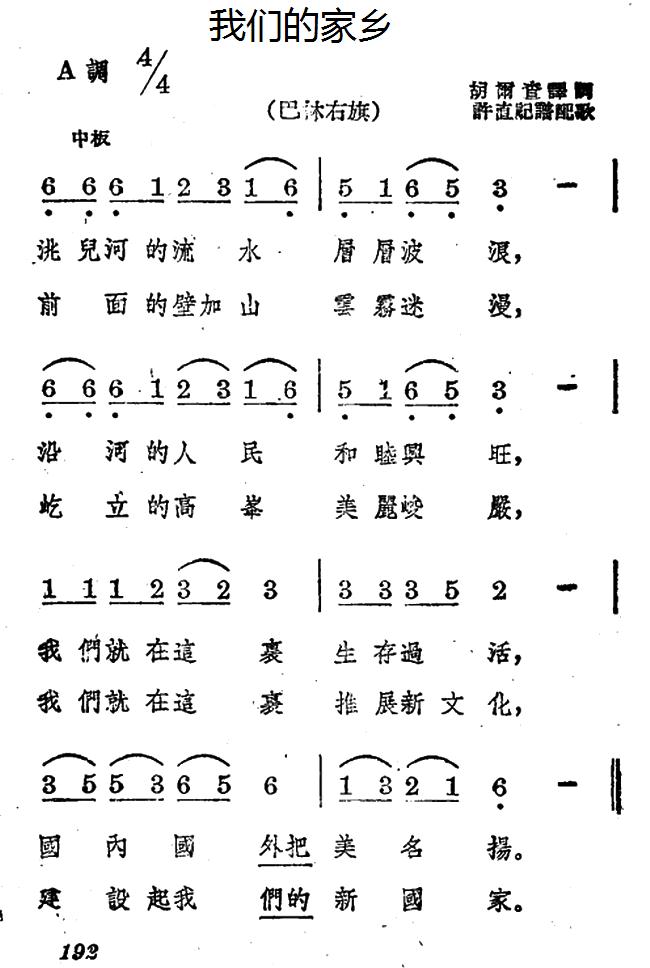 《我们的家乡》简谱 蒙古族民歌、许值记谱配歌