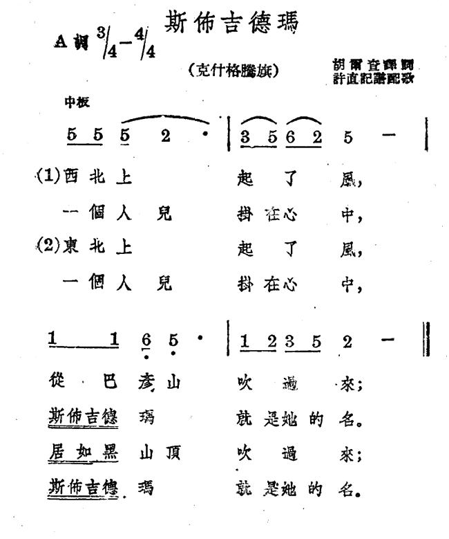 《斯布吉德玛》简谱 蒙古族民歌、许直记谱配歌
