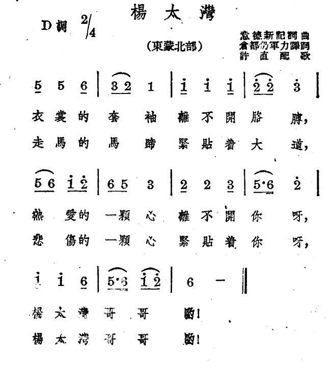 《杨太湾》简谱 蒙古族民歌、许直配歌