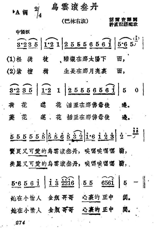 《乌云滚叁丹》简谱 蒙古族民歌、许直记谱配歌