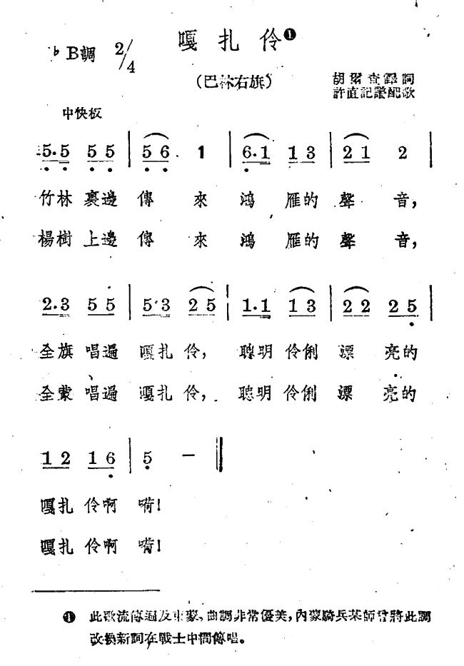 《嘎扎伶》简谱 蒙古族民歌、许直记谱配歌